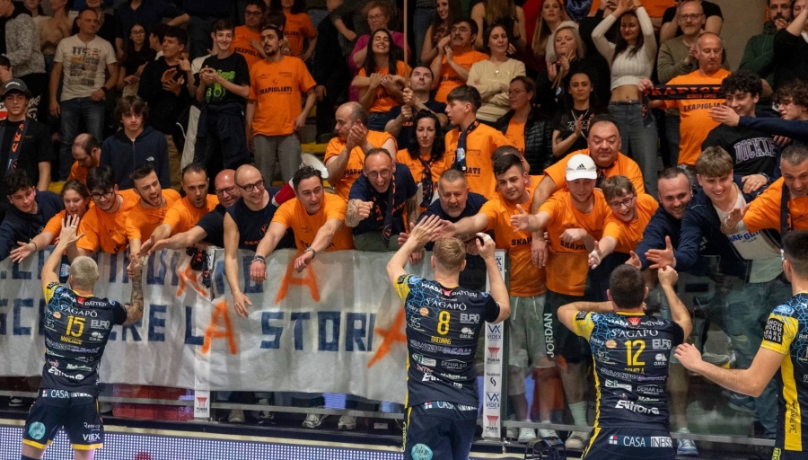 “A Ravenna sarà durissima”, sono state le parole pronunciate a caldo subito al termine di gara 1 da coach Ortenzi, già focalizzato e mentalizzato al return match di domani, domenica in terra romagnola. “Non abbiamo ancora fatto nulla” gli ha fatto eco Michele Fedrizzi, uno che di vittorie ormai se ne intende (basta leggerne il curriculum sportivo). Tentativo di spostare altrove la pressione? Potrebbe anche sembrare, ma è difficile pensare che una formazione che è stata sul gradino più alto del podio sin dalla prima giornata ne abbia bisogno. Più probabilmente si chiama ferma consapevolezza, perché la Yuasa Battery è squadra esperta e, come tale, gli atleti che la compongono sanno benissimo come funzionano queste partite e queste serie playoff. Domenica 14 aprile alle ore 18, al Pala De André, si ripartirà dunque da zero, non tanto e solo per questioni (ovvie) di punteggio, quanto più perché di fronte Grottazzolina ritroverà a distanza di poche ore una squadra giovane, che come tale non avrà difficoltà alcuna a recuperare le necessarie energie. E stavolta sarà Ravenna ad avere la straordinaria opportunità di intervenire in massa per trascinare i propri ragazzi alla bella, per cui l’ambiente che la Yuasa si troverà di fronte non sarà certo quello da scampagnata. Ciò che è sicuro, però, è che nemmeno Vecchi e compagni si sentiranno soli: oltre al pullman organizzato dal gruppo Skapigliati saranno infatti tante le auto private ed i pulmini in viaggio per Ravenna, un lungo serpentone che porterà verso l’impianto romagnolo oltre 100 tifosi e simpatizzanti, tra cui anche diversi grottesi trasferitisi in Emilia Romagna, che di certo non perderanno l’occasione di riabbracciare un pezzo del loro cuore natìo. A Grottazzolina non si parla d’altro, il tempo intercorso tra gara 1 e gara 2 si è fermato, in una lunga apnea. Chi non raggiungerà fisicamente la città del mosaico sarà certamente collegato, un intero paese e territorio a sognare il colpaccio esterno, pur nella consapevolezza che si tratterà di una gara proibitiva. Tante le occasioni per seguire la partita anche per chi resterà nelle Marche: oltre alla diretta tv gratuita (previa registrazione) sul canale tematico Volleyball World Tv, per i nostalgici della radiolina pronta anche la novità della diretta radio su Studio 7 Tv (canale 78 del digitale terrestre Marche) con commento affidato a Simone Leti, storica voce del volley grottese. Squadra pronta, preparata e concentrata, per provare ad approfittare delle eventuali occasioni che capiteranno, se la Consar le concederà o se la Yuasa Battery sarà brava a crearsele. Arbitri dell’incontro i veneti Denis Serafin e Maurina Sessolo, mentre sul fronte statistico da segnalare che Alessandro Bovolenta (classe 2004) è già ad una sola lunghezza dai 1000 attacchi vincenti in carriera. Su sponda marchigiana circoletto rosso per Breuning, che in gara 1 ha sfondato il tetto dei 3000 punti in carriera in Serie A ed è a sole quattro lunghezze dai 700 punti stagionali. Focus anche su Canella, cui mancano due punti per i suoi primi 500 in carriera in Serie A e due muri per sfondare quota 100.