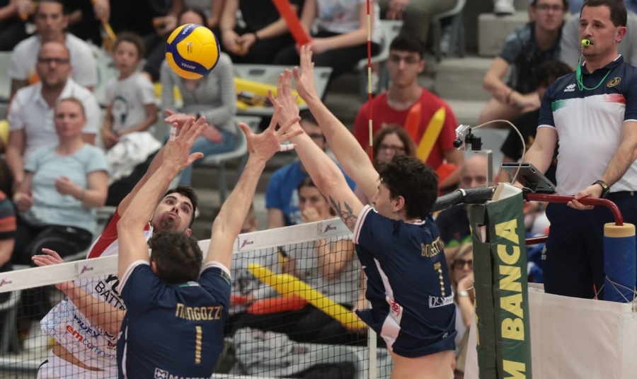 Atmosfera da Superlega in un affollatissimo Pala De André, con i locali che domenica sera hanno messo in scena una prestazione di livello grazie anche ad un Bovolenta super, portando così la serie in parità: mercoledì a Grottazzolina l’atto decisivo