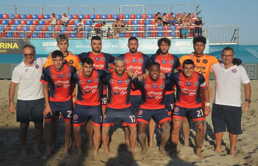 Mister Di Lorenzo si affida dall’inizio al quintetto composto da Paterniti, Miceli, Bokinha, Mascaro e Raphael Silva. Nel primo tempo le due squadre si affrontano a visto aperto e la gara fatica a sbloccarsi. Viareggio ci prova prima con Fazzini che colpisce un legno poi a due minuti dal termine arriva il vantaggio: Ze Lucas dalla sinistra alza il pallone verso il centro dell’area per Gori che in rovesciata trova la rete dell’1-0. Sul successivo calcio d'inizio Bokinha colpisce il palo. Nel finale c’è anche il raddoppio bianconero: Ozu dalla destra crossa sul secondo palo per Remedi che a porta spalancata appoggia il pallone di testa in rete, 2-0. Nel secondo tempo la Samb torna in campo e trova il pareggio dopo un minuto: bella azione costruita dai rossoblu che vede Bokinha servito centralmente al limite dell’area di rigore, fa partire un missile che si stampa sulla traversa poi sulla battuta si avventa Addarii e fa 2-1. Passano tre minuti e i toscani allungano le distanze: tiro libero di Ozuall’altezza della metà campo che cambia traiettoria improvvisamente rimbalzando a terra e la sfera finisce in rete, 3-1. A pochi minuti dal termine Viareggio si porta ancora avanti: Leo Martins appoggia il pallone centralmente a Ze Lucasche di destro trova l’angolino sul palo lontano, 4-1. Subito dopo l’Happy Car pareggia: calcio d’inizio e Bokinha alza la sfera per Addarii che col piattone destro trova un gol favoloso, 4-2. Non passa molto tempo e i campioni d’Italia in carica segnano un altro gol: Ze Lucas serve centralmente Leo Martins che in girata con il mancino trafigge Paterniti, 5-2. Ad un minuto dalla fine accorciano ancora i rossoblu: passaggio alto di Miceli centralmente verso Bokinha, che a tu per tu con Carpita, non perdona, 5-3. Nel terzo tempo la gara continua ad avere ritmi alti ma sembra non volersi schiodare dal 5-3 ma a tre minuti dal fischio finale i rossoblu si portano a meno uno: Paterniti da tiro libero fa partire un sinistro violento e batte Carpita, 5-4. Un minuto dopo c’è l’occasione per pareggiarla con Raphael Silva da tiro di rigore ma la sua conclusione violenta si impatta sulla traversa e successivamente il pallone sbatte sulla linea. Passa qualche secondo e i bianconeri allungano ulteriormente: Ze Lucas scappa via sulla sinistra, crossa in area e al centro trova Remedi che si tuffa e di testa mette a segno il 6-4 definitivo. Una sconfitta amara per i ragazzi di Di Lorenzo che sono rimasti in partita fino all’ultimo ma la testa ora è alla prossima gara. L’Happy Car Samb tornerà in campo domani domenica 14 luglio alle ore 12.15 ed affronterà, nell’ultima gara della tappa di Cirò Marina, la Roma Bs.