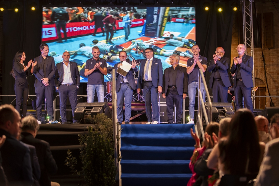 La compagine pallavolistica di Grottazzolina premiata alla 24esima edizione de “La Notte dell’Orgoglio Marchigiano” nella piazza centrale di Francavilla d’Ete gremita in ogni ordine di posto