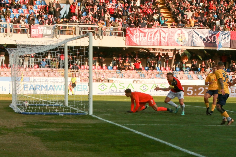 I rossoblù dominano la gara e già al 3’ Euspei conclude ma Perri para. Calcio di inizio per la Samb che attacca verso la Curva Nord. Al 15’ i rossoblù passano in vantaggio, Guadalupi serve Orfano che crossa per Esupei il quale batte Peri e sigla il suo settimo gol stagionale. Al 29’ la Samb raddoppia, sempre con un Euspei, il cui destro non lascia scampo a Perri. Al 37’ e 38’ i rossoblù vanno ancora vicino al gol con Lonardo, che nella seconda occasione colpisce anche la traversa. Al 46’ Perri salva ancora su Orfano. Nella ripresa la Samb legittima e chiude i giochi all’11’ quando Guadalupi scambia su Kerjota e insacca il 3 a 0. C’è solo la Samb, che va vicino al gol altre tre volte ma alla fine il risultato non cambia e la squadra di Palladini conferma il primato.