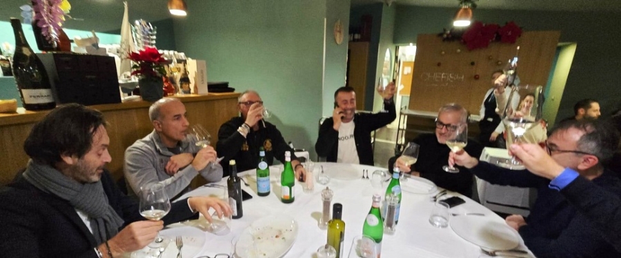 La Tecno Riviera delle Palme ha festeggiato il primato nella classifica del girone F di serie D1 di calcio a cinque con un’affollata cena di Natale all’interno del ristorante Chefish di Porto d’Ascoli.