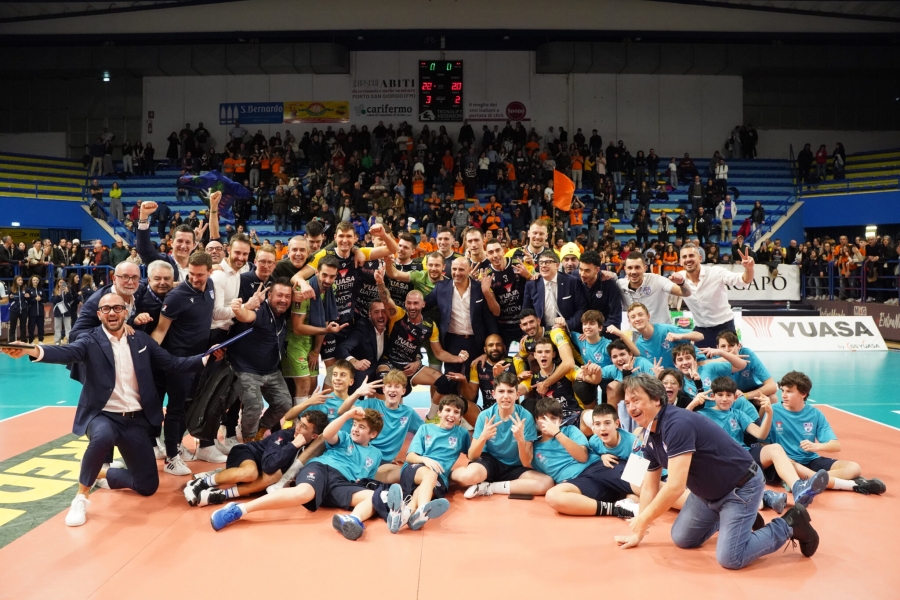 Duemilaquattrocentoquarantasette spettatori. E’ questo il numero che più di altri descrive un match che valeva tanto in termini di classifica, e che ha messo in mostra un valore altrettanto alto anche sul piano tecnico. Un territorio intero ha capito quanto potrebbe valere una salvezza nel campionato più importante del mondo per la matricola Grottazzolina, e sebbene non si trattasse di un match decisivo tutti hanno voluto marcare presenza per trascinare i propri beniamini aldilà di un ostacolo temibilissimo chiamato Taranto. Coach Boninfante recupera il suo opposto titolare Gironi, in diagonale con Zimmermann; Held e Lanza in banda, D’Heer e Roamy Alonso centrali con Rizzo libero in alternanza col giovane Luzzi per la difesa; risponde Grottazzolina con Zhukouski in diagonale a Cvanciger, Fedrizzi e Tatarov ad agire da posto quattro, Demyanenko e Comparoni al centro e Marchisio a dirigere le operazioni di seconda linea. E’ Taranto ad inaugurare il tabellino con Alonso, Gironi per il break del 1-3; Zimmermann si appoggia molto ai centrali appena può, all’ace di Lanza risponde Comparoni, Fedrizzi per il doppio vantaggio Yuasa (11-9) che infiamma il PalaSavelli dopo un’azione fatta di tante difese spettacolari. Reagisce subito Taranto con D’Heer, impatta Lanza a quota 13 con un sapiente mani out; vola Tatarov per il +3 Yuasa, prima in attacco e poi a muro, suo anche il block del 18-14 che costringe Boninfante al time out. Comparoni respinge il primo tempo di Alonso con la palla che finisce in faccia a Lanza per il 20-15, D’Heer mura Demyanenko riavvicinando la Prisma con Ortenzi ferma il gioco per parlarci. Gironi sul servizio velenoso di Zimmermann impatta, 22 pari; due volte Cvanciger (attacco ed ace) a regalare il set point a Grottazzolina. Zhukouski si fa murare il tap in da Gironi ma a restituire il favore ci pensa Held che manda out il servizio, per il 25-23 che chiude il set. Parte forte Taranto in apertura di secondo set, 2-4 con Lanza in parallela; Demyanenko (marcato a vista dal muro ospite) accorcia di uno, ma Alonso è carico e schianta il 5-7. L’azione che vale il 9 pari è uno spettacolo di difese, la chiude Cvanciger (75% per lui nel set di apertura); bombarda Fedrizzi in diagonale e sul suo servizio successivo Zimmermann fa il miracolo recuperando palla quasi sulla panchina locale, Lanza spreca ed è 14-12 Yuasa. Il tredicesimo punto di Taranto arriva direttamente da una ricezione di Lanza, colossale la dormita grottese; Comparoni per l’ace che vale il 18-15, interminabile l’azione del 19-17 chiusa da Held in parallela. D’Heer riavvicina Taranto a muro, con Boninfante che si gioca anche la carta Hofer; vola in cielo però Tatarov per il 23-20 che fa spellare le mani al foltissimo pubblico del PalaSavelli. L’errore al servizio del neo-entrato canadese regala a Grottazzolina il primo set point, Comparoni dal centro per il 25-22 che dà il doppio vantaggio alla Yuasa Battery. Taranto subito avanti nel terzo parziale, 0-2 nel segno di Alonso; Boninfante non trova certezze dall’altro centrale D’Heer, e si gioca la carta Alletti, subito a segno. La lunghissima azione che vale il 3-5 pugliese è merito di Rizzo, spettacolare la sua difesa sulla diagonale stretta di Tatarov; +4 Gioiella con la pipe di Held. Momento di difficoltà per Grottazzolina, che finisce sotto 4-9 con le bordate di Gironi, funzionano le molle di Held per il 9-13 ionico. Demyanenko con un primo tempo seguito dall’ace all’incrocio delle righe riavvicina la Yuasa sul 13-15, magia di Lanza per il 15-19 in pipe sfruttando il muro scomposto dei locali. Prova ad accorciale la Yuasa con Fedrizzi, ma la superdifesa di Luzzi sul primo tempo di Demyanenko viene premiata e Taranto vola sul 17-22 (ace di Zimmermann). Un paio di regali da parte degli ospiti ed un ace di Cvanciger portano Grottazzolina a quota 20, l’azione che vale il 21-22 è un miracolo difensivo dietro l’altro, Lanza salva una palla impossibile ma Cvanciger non si fa fermare. Gironi salta in paradiso per il 22-23, sempre lui a chiudere sul 23-25 che riapre il match. Yuasa avanti 3-1 nel quarto parziale con Comparoni a muro, miracolo di Fedrizzi che capitalizza una ricostruzione di Cvanciger per il 5-2. Lanza serve vincente riportando subito Taranto in parità, muro di Alonso per il vantaggio ionico e sempre Lanza a seminare il panico dai nove metri, 5-7 e break micidiale della Gioiella. Antonov sporca sul muro per la parità a quota 8, Alletti mura e riporta sopra i pugliesi di due; il 13-12 di Fedrizzi alza in piedi un intero palasport, che difese da ambo le parti! Gironi picchia dai nove metri e Taranto impatta, perde incisività invece il servizio Yuasa, permettendo ai pugliesi di siglare il 18-20 con Held; è un momento decisivo, Gironi trascina i suoi ed è Lanza a far valere tutta la sua classe per il 19-22. L’opposto ospite è inarrestabile, chiude la Gioiella sul 20-25 e la rimonta ionica è compiuta. Il tie break vede Taranto avanti di uno, ace di Fedrizzi per la parità a quota 4; Lanza pizzica la riga per il 5-6, per poi inventarsi il mani out successivo su muro a tre, davvero importante la crescita del capitano della Prisma dal terzo set in poi. Avanti di uno gli ionici al cambio di campo, Gironi a chiudere la lunga azione del 8-10 con la superparallela che costringe Ortenzi al time out; l’ace di Cvanciger vale la parità, esce però la sua diagonale per il 11-13 tarantino. Out il contrattacco di Gironi per la nuova parità, l’aria si fa tesissima; il muro della Yuasa finisce out di un soffio regalando a Taranto la palla del match, Cvanciger allunga la contesa annullando tutto per due volte. Comparoni mette l’ace che riporta sopra la Yuasa 17-16, Gironi ed Held ribaltano tutto ancora una volta; il finale è da thrilling. Fedrizzi la manda out e la partita sarebbe chiusa, se non fosse per una invasione plateale di Alonso che rimette tutto in gioco; Demyanenko per l’ennesimo sorpasso, l’urlo del