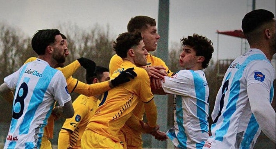 La Fermana torna da Isernia con un punto, con l’1-1 maturato al termine dello scontro tra formazioni inglobate nella lotta salvezza. Per la truppa di mister Fabio Brini, dopo l’esordio amaro con sconfitta domestica patita per mano della Recanatese, si tratta quindi del terzo risultato utile consecutivo, dato atto del successo in casa dell’Ancona e della recente affermazione tra le mura amiche nel ricevere l’Atletico Ascoli. Tornando alla gara odierna disputata in terra molisana, tipico tridente offensivo per i canarini, con Bianchimano terminale centrale assistito a sinistra da Sardo, con De Silvestro sull’out opposto. Outtara a suggerire il tandem di punte composto da Cascio e Coratella nelle economie della squadra biancazzurra. Inizio di sfida al piccolo trotto, fino alla conclusione di Sardo a cavallo della mezz’ora di gioco, ma l’estremo Draghi si oppone con autorevolezza. In pratica è l’unica emozione del primo tempo, con la ripresa che si apre con il tiro di Mavrommatis, e la relativa traiettoria di poco alta. Al minuto 61, però, la rottura degli argini grazie alla punizione di Cascio a perforare l’estremo fermano Perri. Neanche il tempo di metabolizzare il passivo che l’undici di mister Brini trova subito il pari grazie all’inzuccata di Tafa. Forte della rete Romizi & soci ci provano sino al triplice fischio, senza però sfondare le resistenze dell’estremo molisano Draghi. Il punto contribuisce ad ogni modo a mantenere la Fermana ad una sola distanza dalla parte salda della classifica, rappresentata dalla salvezza diretta. Nella foto, una fase del match, fonte profili ufficiali social della Fermana F. C. Il tabellino: ISERNIA 1: Draghi, Pecoraro, Pettorossi, Baba, Romat, Gimenez, Ercolano, Miola, Ouattara (84’ Arzura), Cascio, Coratella (44’ Bainotto). All. Farrocco (squalificato, in panchina Nasini) FERMANA 1: Perri, Cocino, Tafa, Romizi, Etchegoyen (90’ Valsecchi), Bianchimano, De Silvestro, Sardo (85’ Pinzi), Dragomir, Mavrommatis, Karkalis. All. Brini ARBITRO: Paolo Rodolfo Benestante di Aprilia RETI: 61’ Cascio, 63’ Tafa NOTE: Ammoniti Miola, Cascio, Karkalis e Sardo. Al minuto 64 espulsi dalla panchina locale Perrone e Russo