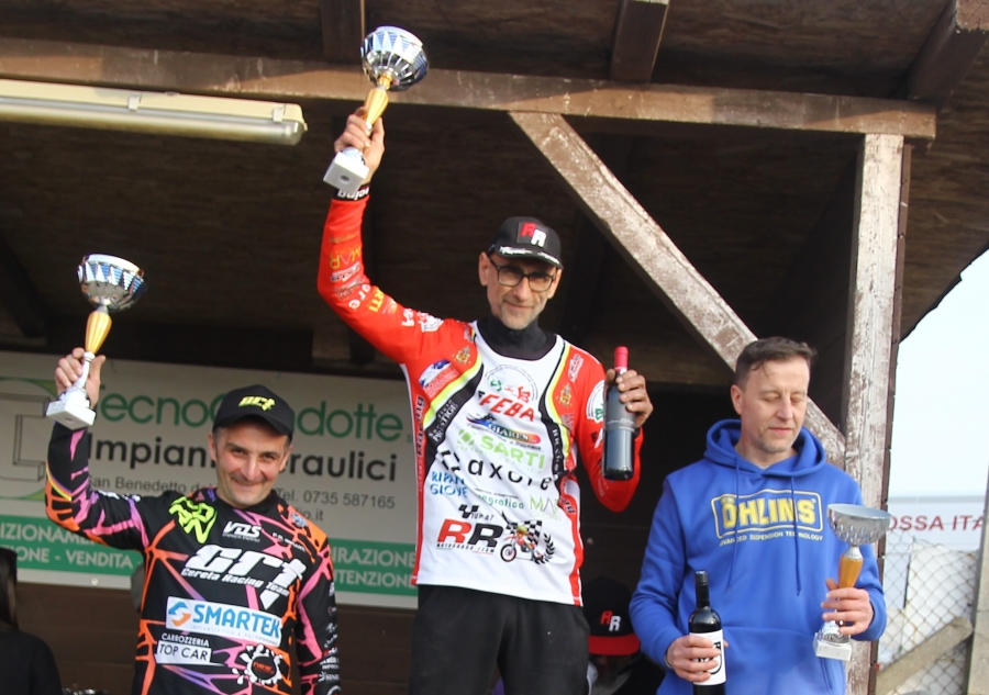 All’interno del crossodromo “San Savino” di Acquaviva Picena, domenica scorsa ha preso vita la seconda prova del Campionato Regionale Uisp Marche Epoca, contesto agonistico dove il team fermano Red Racing si è presentato ai cancelletti di partenza con una formazione ridotta rispetto agli standard domenicali in quanto alle prese con le precarie condizioni di alcuni piloti, colpiti da influenza. Nel resoconto settimanale spicca, manco a dirlo, la superlativa prova di Graziano Peverieri (nella foto sul podio di fine giornata). L’inossidabile asso delle due ruote artigliate si è aggiudicato infatti l'assoluta di giornata grazie al successo costruito sin dalle qualifiche della mattinata, base di partenza solida per i primi posti conquistati in ambo le manche. L’automatico, e meritato, gradino del podio apicale lo vede quindi in testa al torneo regionale, forte della Tabella Rossa di leader nella categoria New Epoca. Nella selezione di gara Epoca Vintage, Diego Piersigilli chiudeva invece in quarta posizione assoluta, ad un soffio dal podio, ma conquistava da par suo la terza posizione di campionato nell’ambito della classifica generale. Categoria Hobby Mx2 riferita infine all’Interregionale in quota a Taino Felici, approcciata come sorta di gara di allenamento. Felici da scelta stagionale risulta impegnato in una categoria diversa nell’ambito del Campionato Regionale, ma nel caso del recente fine settimana è riuscito ad ogni modo a piazzarsi in quinta posizione assoluta, facendo registrare dunque un ottimo risultato considerando, per l’appunto, che si trattava di una semplice gara di allenamento.
