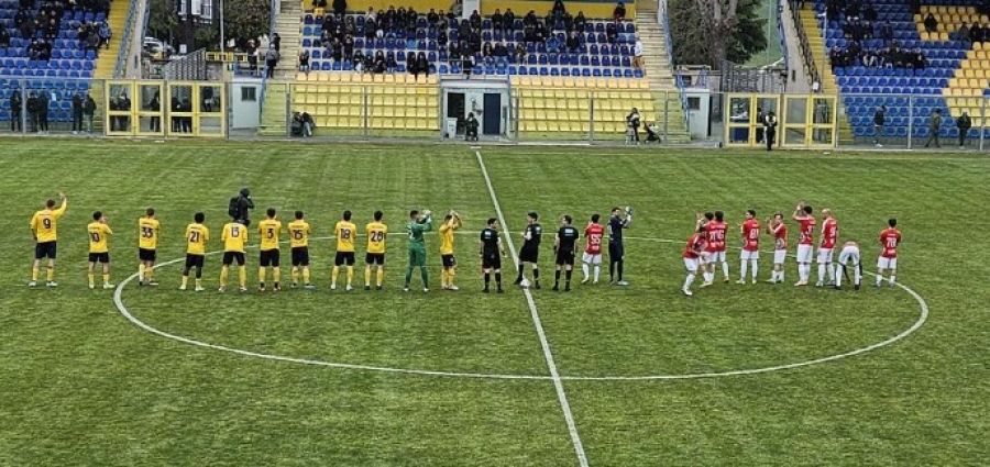 La Fermana ritrova la vittoria dopo un digiuno che durava dal 19 gennaio (2-0 sull’Atletico Ascoli). A firmare il successo, con un gol per tempo, è stato Bianchimano, trascinatore di una squadra che sta dimostrando di non voler arrendersi alla lenta retrocessione verso l’Eccellenza. La classifica resta complicata, ma solo i tre punti potevano tenere accesa la fiammella della speranza. La Fermana scende in campo con diverse defezioni: fuori per squalifica Sardo ed Etchegoyen, mentre Tafa, non al meglio, parte dalla panchina insieme a Pinzi. Assenti per infortunio Casucci ed il portiere Di Stasio, alle prese con un infortunio al piede. Brandao e Diouane titolari. Sul fronte Avezzano, sorpresa dell’ultimo minuto: il centrale Sbardella, dato in dubbio alla vigilia, stringe i denti e parte dal primo minuto. Conseguente lo spostamento di Senese sulla fascia destra. In mezzo al campo, Staiano vince il ballottaggio con Cannavaro e si prende una maglia da titolare. La cronaca, come narrato dall’ufficio stampa gialloblù. Primi minuti ricchi di emozioni al “Recchioni”. Al 6’ la Fermana sbaglia l’uscita palla al piede, Konatè intercetta e si invola verso l’area: la sfera finisce a Mascella, ma il suo destro si alza troppo sopra la traversa. La replica gialloblù arriva subito, precisamente all’8’, Karkalis scodella al centro per Bianchimano, che sul primo palo svetta e di testa sfiora l’incrocio con una torsione precisa. L’Avezzano torna a farsi vedere al 10’, con la bella combinazione nello stretto tra Mascella e Ferrari, quest’ultimo conclude dall’interno dei sedici metri, ma Perri è attento e respinge. Al 12’ è De Silvestro a provarci con un mancino in girata, ma la palla sorvola la traversa. Al 17’ punizione da posizione invitante per la Fermana, con lo stesso De Silvestro che calcia e costringe Cultraro all’intervento. Un minuto più tardi brivido per i padroni di casa. Perri rinvia corto e colpisce Konatè al limite dell’area, la carambola rischia di beffare il portiere gialloblù ma la palla termina a lato. Al 22’ Bianchimano calcia una punizione che, deviata dalla barriera, finisce in angolo. E proprio sugli sviluppi del corner arriva il vantaggio canarino: De Silvestro pennella al centro, Bianchimano sale in cielo e di testa trafigge Cultraro, infilando la sfera nell’angolino basso. Al 28’ fiammata dell’Avezzano con Konatè. L’attaccante biancoverde si libera cioè con una bella giocata e lascia partire un sinistro dai 20 metri che sfiora il palo alla sinistra di Perri. Passa un minuto e l’Avezzano ha l’occasione d’oro per rimettere il match in parità. Konatè, lanciato in profondità da Ferrari, entra in area e viene steso da Perri. L’arbitro indica il dischetto. Dagli undici metri si presenta lo stesso Ferrari, ma il suo tiro colpisce il palo alla sinistra del portiere canarino. Sfuma così una grande opportunità per gli ospiti. La Fermana non sta a guardare e al 34’ risponde con una sassata di Busato dalla distanza: il mancino del centrocampista è potente e preciso, costringendo Cultraro a volare e deviare in angolo con un grande intervento. Al 43’ è ancora De Silvestro a rendersi pericoloso. La sua punizione dalla trequarti è insidiosa, tagliata e tesa, ma nessun compagno riesce ad arrivarci per la deviazione vincente. Il pallone sfila sul fondo, a pochi centimetri dal palo. La ripresa si apre nel segno della Fermana, che al 7’ costruisce la prima occasione. Valsecchi si inserisce con tempismo perfetto ma viene murato provvidenzialmente da Bassini, decisivo nell’anticipo davanti al proprio portiere. Pochi minuti dopo, è Bianchimano a rendersi pericoloso con un diagonale potente che viene deviato in corner da un intervento puntuale di Sbardella. Al 29’ l’attaccante gialloblù va a un passo dal raddoppio su calcio piazzato, ma la sua conclusione, deviata dalla barriera, si stampa sul palo con Cultraro immobile. È una clamorosa palla gol per i padroni di casa. Due minuti più tardi, però, arriva il meritato 2-0. Al termine di un’azione insistita, Bianchimano calcia di sinistro dopo una prima respinta di Cultraro sul suo stesso tiro e firma la doppietta personale. Al 43’ l’Avezzano prova a riaprire il match con una sortita offensiva, con Pozatzidis che entra in area da posizione defilata e tenta la conclusione sul primo palo, ma Perri è reattivo e respinge in calcio d’angolo. Dopo sei minuti di recupero, il direttore di gara decreta la fine dell’incontro. Il tabellino: FERMANA 2 (3-5-2) Perri; Tomassini, Cocino, Karkalis; Diouane, Busato (17’ st Mavrommatis), Romizi, Valsecchi, Brandao; Bianchimano (45’ st Ricci), De Silvestro (38’ st Pinzi). A disposizione: Ventresini, Tafa, Pappalardo, Perez, Carosi. All. Mirko Savini AVEZZANO 0 (4-3-3) Cultraro; Senese (1’ st Ferrandino), Sbardella, Bassini, Allessi; Mascella, Selvaggio (21’ st Barbetta), Staiano (1’ st Cannavaro); Konate, Pozatzidis, Ferrari (10’st Capitanio). A disposizione: Esposito, Lapenna, Vantaggiato, Gorobsov, Quaranta. All. Mirko Pagliarini RETI: 23’ e 31’ st Bianchimano ARBITRO: Pasquale Mozzillo di Reggio Emilia NOTE: Ammoniti Perri e Karkalis, angoli 8-5, recupero 2’ + 6'