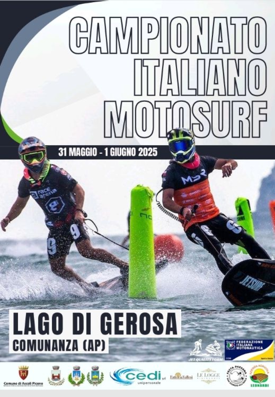 È ai nastri di partenza la prima tappa del Campionato Italiano di Motosurf che si svolgerà il 31 maggio e il primo giugno 2025 presso il Lago di Gerosa – località San Giorgio all’Isola – Montemonaco (AP)