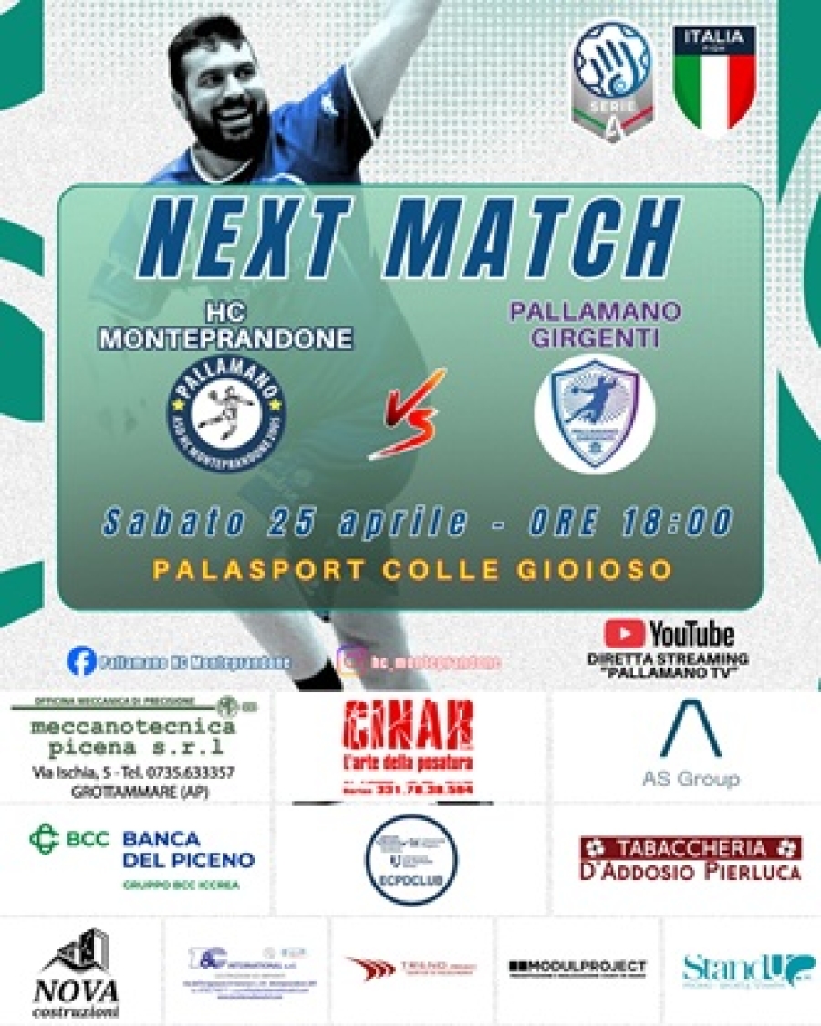 L’HC Monteprandone torna al Pala Colle Gioioso per chiudere il percorso casalingo di una stagione che ha già detto una verità importante: la salvezza è matematica, conquistata con merito in un campionato difficile, pieno di piazze esperte e abituate a lottare a questi livelli Eppure, non basta. Non basta perché le cinque sconfitte consecutive non raccontano il vero volto dei biancoverdi. Non parlano della mentalità che ha permesso a un gruppo giovane, all’esordio nella categoria, di reggere l’urto di trasferte pesanti, ritmi alti e avversari costruiti per altri obiettivi. È proprio quella mentalità che coach Andrea Vultaggio vuole ritrovare. È quella scintilla che chiede ai suoi ragazzi di riaccendere «Serve una prova di orgoglio» è il messaggio che arriva dalla panchina. Una partita da affrontare con la testa alta, con la voglia di dimostrare che questa stagione non è stata solo una salvezza, ma un percorso di crescita, identità e appartenenza. Dall’altra parte ci sarà un Girgenti con l’acqua alla gola: gli agrigentini devono vincere per continuare a sperare nella permanenza in categoria. Verranno a Monteprandone con il coltello tra i denti, pronti a giocarsi tutto E proprio per questo, per il valore dell’avversario e per ciò che rappresenta questa gara, l’HC vuole mettere in campoil meglio di sè: intensità, lucidità, coraggio. Vuolefarlo davanti al proprio pubblico, quello che non ha mai smesso di sostenere, quello che ha accompagnato ogni passo, ogni caduta e ogni risalita Una gara che vale per la classifica, certo. Ma vale soprattutto per l'identità della squadra stessa. Per chi ha creduto in questo gruppo. Per chi ha lottato in ogni allenamento. Per chi ha riempito il palazzetto anche nei momenti più difficili Sabato dunque si vuole chiudere il percorso insieme, con una prestazione all’altezza della storia. Con un palazzetto pieno, caldo, rumoroso. Con la voce di Monteprandone che spinge i ragazzi fino all’ultimo pallone.