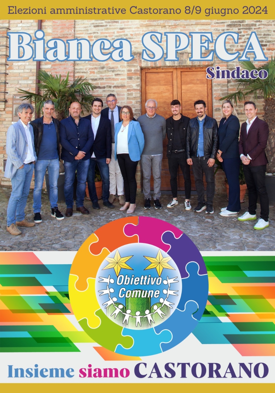 Manifesto Bianca Speca con gruppo consiglieri di Obiettivo Comune comunali Castorano 2024
