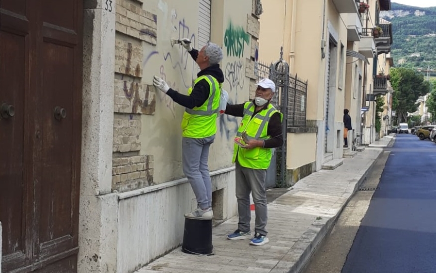 Altro lavoro portato a termine, ad Ascoli, per gli ‘Angeli del bello’, all’interno del progetto più ampio di pulizia di viale Vellei.