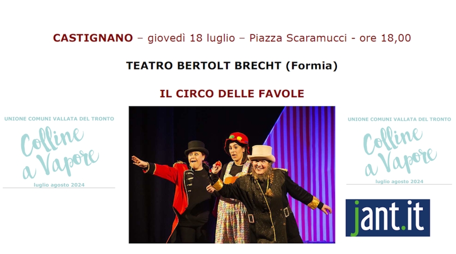 Sarà la compagnia TEATRO BERTOLD BRECHT di Formia a portare in scena IL CIRCO DELLE FAVOLE nella rassegna di Colline a Vapore, del MARAMEO FESTIVAL MARCHE, il 18 luglio a Castignano, in piazza Scaramucci alle ore 18:00