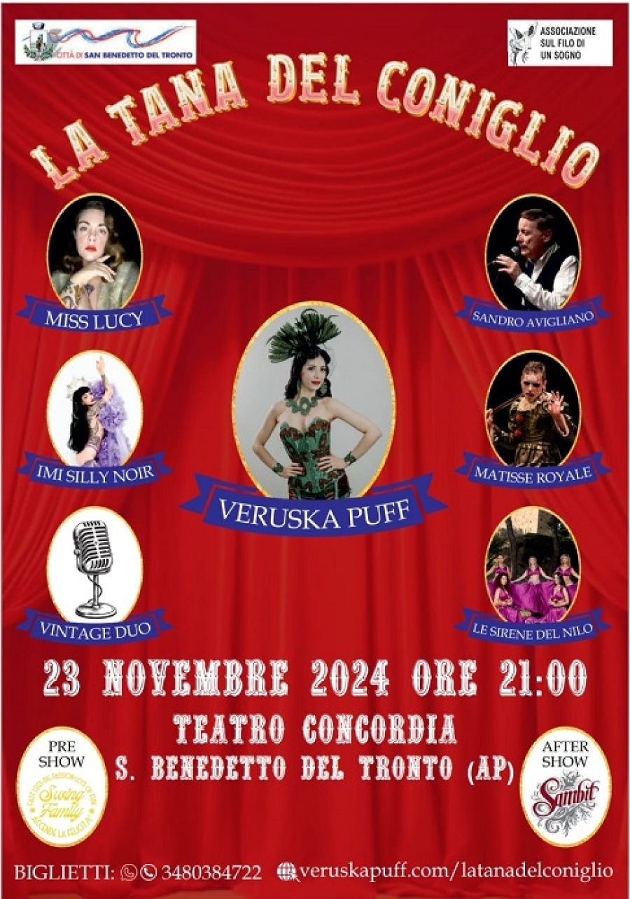 In scena la 3a edizione dello show “La Tana del Coniglio” con Veruska Puff, sabato 23 novembre al Concordia
