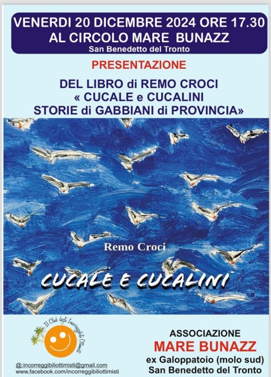 San Benedetto - Venerdì 20 dicembre alle 17:30, presso il Circolo Mare Bunazz di San Benedetto del Tronto, il giornalista e artista locale Remo Croci presenterà il suo libro “Lu cucale e i cucalini”.