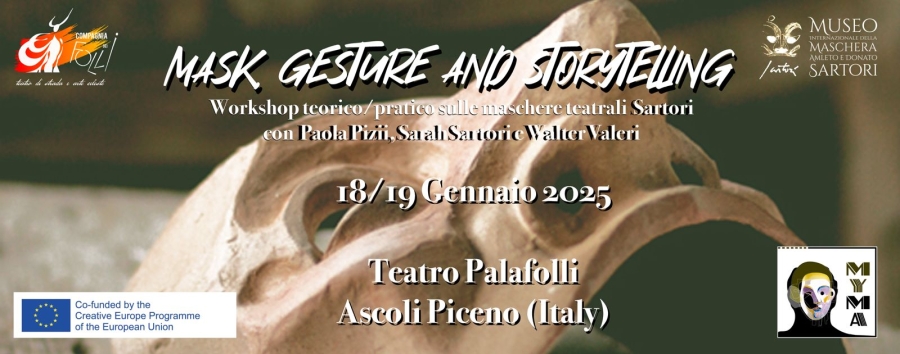 Sabato 18 e domenica 19 gennaio 2025 presso il Teatro PalaFolli si svolgerà un workshop organizzato dal Museo Internazionale della Maschera Amleto e Donato Sartori nell’ambito del progetto europeo “MYMA – Myths and Masks of the future”, co-finanziato dal programma Europa Creativa dell’Unione Europea con capofila la Compagnia dei Folli di Ascoli Piceno.