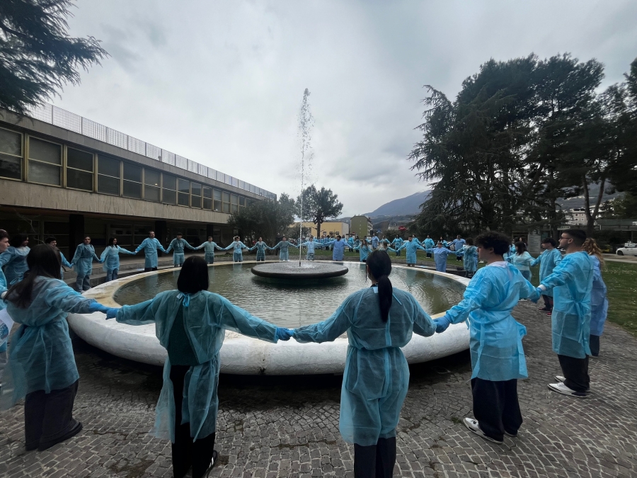 Nella Giornata nazionale di educazione e prevenzione contro la violenza nei confronti degli operatori sanitari e sociosanitari che si celebra oggi 12 marzo, l’Azienda sanitaria territoriale di Ascoli, con il coinvolgimento degli studenti dei corsi di laurea di infermieristica e di radiologia medica per immagini e radioterapia della Facoltà di medicina e chirurgia dell’Università Politecnica delle Marche, è scesa in campo per sensibilizzare su questa tematica. Alle 12.30 di stamattina 85 studenti dell’Univpm hanno dato vita a un flash mob fuori dall’ospedale ‘Mazzoni’: in camice monouso e in fila indiana, i futuri operatori sanitari sono usciti dall’ingresso principale del nosocomio ascolano e si sono diretti verso il giardino dove si sono disposti a forma di fonendoscopio, simbolo della professione medica. Qualcuno di loro aveva in mano un cartello con scritto: ‘Operatori sanitari di oggi e di domani: se mi aggredisci, chi ti cura?”. “Abbiamo organizzato questo flash mob insieme all’Università Politecnica delle Marche per una causa che non può più essere ignorata: dire basta alla violenza contro gli operatori sanitari. E lo abbiamo fatto con gli operatori sanitari di domani”. Queste le parole del direttore generale dell’Ast di Ascoli, Maria Bernadette Di Sciascio, che continua dicendo: “Ogni giorno medici, infermieri, tecnici, operatori sociosanitari e tutto il personale impegnato negli ospedali e nei servizi territoriali dedicano le proprie energie, la propria professionalità e, soprattutto, la propria umanità alla cura degli altri. Eppure, troppo spesso, sono costretti a subire aggressioni fisiche e verbali, atti di violenza che feriscono, non solo fisicamente, ma anche la dignità di chi si dedica alla salute della collettività. Un ospedale, un ambulatorio, una postazione di emergenza devono essere luoghi di cura e rispetto, non di paura. Non possiamo accettare che chi è qui per aiutare venga aggredito. È un fenomeno che, non solo mette a rischio la sicurezza degli operatori, ma compromette la qualità dell’assistenza per tutti”. “Oggi, con questa iniziativa – conclude il dg dell’Ast -, abbiamo voluto dare un contributo per diffondere la cultura del rispetto. Perché la violenza non può mai essere la risposta alla sofferenza, o alla frustrazione. A chi lavora ogni giorno con dedizione, a chi non si arrende, a chi crede ancora nella bellezza di questa professione, voglio dire: non siete soli. Insieme possiamo fare la differenza, insieme possiamo costruire un ambiente più sicuro per chi cura e per chi viene curato”.