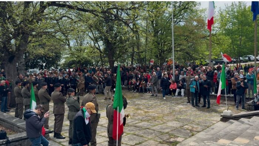 La cerimonia è proseguita a Colle San Marco con la deposizione della corona sul cippo; quindi, sul Sacrario ai Caduti per la Resistenza, sono stati resi gli onori ai caduti. Rita Forlini, vicepresidente dell'Anpi di Ascoli Piceno, ha ricordato che "oggi 80 anni di libertà si rinnovano davanti a tanta gente e tanti giovani. E' una gioia grandissima avere avuto qui tanti giovani, perché il ruolo dell'Anpi, che le è stato assegnato nel giugno del 1945, è proprio quello di mantenere la memoria attiva. E la memoria è attiva solo quando passa il testimone alle generazioni più giovani. Quindi oggi, per quanto l'esuberanza possa averci un attimo colto, magari di sorpresa, ma è veramente una benedizione" ha detto Forlini augurandosi che i giovani "sappiano prendere le consegne di un mondo adulto che non sempre è stato all'altezza della situazione e perpetuare un dovere di riconoscenza nei confronti dei partigiani e delle partigiane che invece furono, nella loro ordinarietà, persone straordinarie che ci hanno donato la libertà di cui noi oggi godiamo". "Giustizia, libertà, democrazia: sono i valori che celebriamo oggi a 80 anni dalla liberazione, in questo 25 aprile, qui al Sacrario di Colle San Marco, molte persone sono salite per ricordare chi ha versato il sangue per garantire a noi anche il nostro futuro libero e democratico" ha detto il sindaco di Ascoli Piceno Marco Fioravanti. "È un momento molto importante in una situazione complessa - ha aggiunto - perché ancora le guerre presenti nel mondo ci fanno capire che nulla è scontato: né la libertà, né la pace, né la democrazia. Quindi dobbiamo ogni giorno lavorare per tramandare la memoria e anche per difendere i valori della democrazia, della libertà, della pace e la nostra Costituzione". "La memoria di quello che è successo, la memoria di quello che abbiamo conquistato, riconquistato, è sicuramente fondamentale e quindi dobbiamo sempre ricordarlo" ha detto il prefetto Sante Copponi. Il presidente della Provincia di Ascoli Piceno Sergio Loggi ha sottolineato che "in questo luogo sacro della resistenza con l'orgoglio di rappresentare la Provincia insignita della Medaglia d'Oro al Valor Militare per attività partigiana, dobbiamo rinnovare la profonda gratitudine a quanti sacrificarono la loro propria vita per liberarci dal gioco della tirannide nazifascista e dagli orrori della seconda guerra mondiale".
