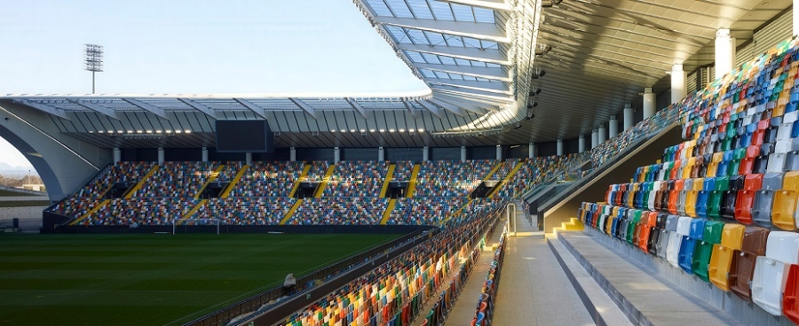 Gli stadi, simboli di passioni e cambiamento, raccontano la storia delle città attraverso architettura, cultura e identità collettiva. Occuparsi oggi degli stadi, delle loro costanti trasformazioni fisiche, della loro fruizione e percezione nella società attuale, significa occuparsi di città e di rigenerazione urbana, di antropologia sociale, di questioni politiche ed economiche e anche di espressioni artistiche e culturali. La mostra presenta 54 progetti di stadi progettati e costruiti in tutto il mondo, disposti nello spazio in ordine cronologico, mettendo in luce la complessità dei significati che vi si associano e stratificano. Un racconto espositivo che parte dall’evoluzione degli stadi dal punto di vista architettonico e si arricchisce di storie della cultura popolare, grandi progetti internazionali e opere d’arte. Tra essi, il "Riviera delle Palme" di San Benedetto del Tronto progetto dell'arch. Vincenzo Acciarri.