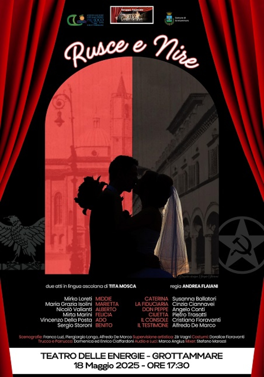 La Compagnia vincitrice della scorsa edizione 2024 del suddetto premio, la Compagnia Teatrale “GENTE NOSTRA” di Ascoli Piceno, porterà in scena la sua prima di “RUSCE E NIRE”, una commedia in dialetto ascolano della compianta scrittrice Tita Mosca, rappresentata per la prima volta dalla compagnia teatrale nel lontano 2009 per la regia di Guido Mosca. A distanza di 16 anni, la compagnia ripropone, con Andrea Flaiani alla regia, questa divertente storia del calzolaio ascolano Middio “Caporosso”, comunista sfegatato, costretto dalla sorte a vivere il ventennio fascista e a confrontarsi quotidianamente con gli aspetti farseschi dell’una e dell’altra parte. Il sipario si apre ad Ascoli la mattina di un 28 ottobre sul finire degli anni ’30, ricorrenza della marcia su Roma: giornata di parate, bande musicali, marce, saggi ginnici e in cui le scarpe hanno una valenza fondamentale. A Middio non basteranno né la sua venerazione del quadro di “Baffò” (Stalin), che tiene appeso alle sue spalle, né l’opera mediatrice di sua moglie Marietta per evitare di contaminarsi col mondo che lo circonda, anzi: sarà proprio la sua amata figlia Caterina, “giovane italiana” della prima ora che, innamorandosi di Benito, novello “controllore della milizia”, sospingerà forzatamente il malcapitato tra le braccia del regime attraverso una serie di accadimenti e intrecci esilaranti con un finale affidato…alla provvidenza, ma non troppo! Per questa 20° edizione di “Commedie Nostre”, l’Associazione Lido degli Aranci ha consolidato in maniera ancora più significativa la collaborazione fattiva da tanti anni, con la Federazione Italiana Teatro Amatoriale Marche, partner ufficiale della kermesse, che ha portato all’interno della Rassegna il Concorso di “Dialetti Marchigiani a Confronto”, un concorso regionale che vede vincitrice assoluta una compagnia su tutte quelle delle provincie di Ascoli Piceno e Fermo iscritte alla FITA. “Commedie Nostre” quindi, ha fatto da cornice a queste importanti semifinali che vedrà la vincitrice, concorrere per la finalissima di questo ambìto premio regionale. Durante la pomeridiana si consegneranno oltre al Premio Fita quindi, i premi del già anticipato prestigioso “Grottammare Mask”, vincitori definiti da una Giuria Tecnica d’eccezione, composta dal Comune Grottammare, dalla Fita Regione Marche, dal Presidente della Lido Alessandro Ciarrocchi e da alcuni componenti del Direttivo quali Ruggero Mignini, Giarmando Dimarti e Massimo Giovanditto mentre come abbonata storica la signora Loredana Sagripanti. Ecco le tipologie di premi che saranno consegnate, su cui tutti aspettiamo di conoscerne il verdetto, restando in fervida attesa, pieni di curiosità per questa edizione dei Record 2025: la Compagnia Vincitrice delle Semifinali di “Dialetti Marchigiani a Confronto”; la Compagnia Vincitrice Premio Grottammare Mask di Commedie Nostre; la Compagnia Vincitrice Premio Giuria Popolare di Commedie; la Compagnia Vincitrice del Premio del Sorriso di Commedie Nostre; il Premio MigIior Attore; il Premio Miglior Attrice; il Premio Miglior Attrice Caratterista e il Premio Regia per la Miglior Traduzione in dialetto. Conduce la serata la grottammarese doc Alessandra Mora, mentre il momento poetico ormai irrinunciabile che ha accompagnato tutto l’inverno di “Commedie Nostre” è a cura della poetessa Mascia Lanciotti. Info al 335.6234568 e sui canali social ufficiali, costo del biglietto con posti numerati 10€. Con questo appuntamento la Lido di Grottammare chiude in bellezza tra tantissimi sold-out pieni di soddisfazione la stagione invernale della sua programmazione cittadina ma già riparte fra qualche settimana per tutto il calendario già definito, in collaborazione con l’amministrazione comunale di Grottammare, degli eventi estivi, tantissimi e diversificati per soddisfare tutti i gusti, definendosi così punto cardine per il divertimento a Grottammare ma soprattutto come partner solido e veramente qualificato per la cittadinanza e oltre.