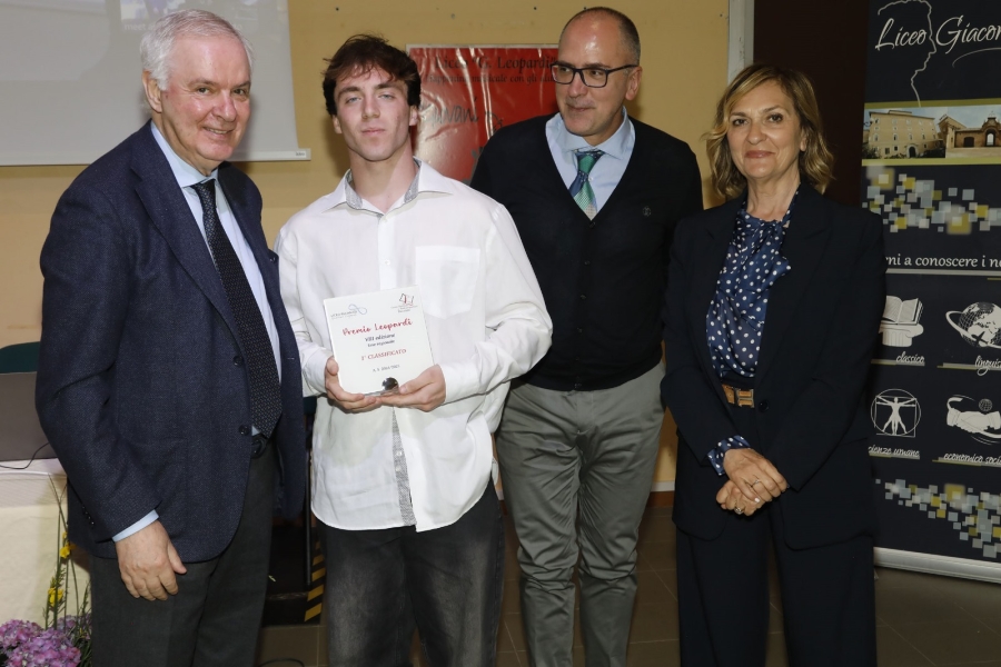 Grazie a questo pregevole risultato Lorenzo potrà partecipare alla fase nazionale del concorso, che si svolgerà il primo giugno 2025, presso la sede del liceo “G. Leopardi” di Recanati. Il bando del concorso prevedeva la partecipazione di due studenti per istituto, i quali lo scorso 14 aprile si sono cimentati nella complessa prova regionale, della durata di quattro ore complessive, articolata in due parti: una prima parte, nella quale si richiedeva la parafrasi di alcuni versi di Leopardi e la risposta a quesiti di ordine lessicale, metrico e stilistico e una seconda parte, nella quale veniva proposto lo sviluppo libero di una traccia di riflessione tematica. Il tipo di prova, piuttosto impegnativo, si proponeva di far dialogare i ragazzi con la figura del poeta recanatese, recuperandone la modernità del pensiero e la potenza di una poesia che attraversa i secoli e le generazioni. La tappa conclusiva di questa prima fase del concorso “Leopardi” è stata quindi la cerimonia di premiazione, svoltasi il 6 maggio presso il liceo di Recanati, alla quale i due studenti del “Rosetti” hanno avuto la possibilità di assistere, accompagnati dalla loro insegnante di Italiano, professoressa Alessia Palestini, referente del concorso. A tutti i ragazzi partecipanti sono stati consegnati degli attestati di merito, mentre i primi tre classificati sono stati insigniti di una targa. Lorenzo ha avuto l’onore di ricevere il premio dalle mani del Presidente del CNSL, dott. Fabio Corvatta, e di ascoltare il giudizio della Commissione regionale sul suo elaborato, del quale sono stati messi in evidenza la “spiccata capacità di cogliere la complessità del testo leopardiano, fin dalla parafrasi accurata delle strofe de Il tramonto della luna e dall’analisi del lessico, del metro e dei collegamenti intertestuali”, nonché “la matura riflessione, animata anche da partecipazione emotiva autentica” dimostrata nel corso del commento del passo dello Zibaldone sul confronto tra Dante e Tasso. Oltre che da Lorenzo, il Liceo “Rosetti” è stato rappresentato dalla studentessa Giorgia Perozzi, anche lei della classe VB. Entrambi gli studenti hanno sempre dimostrato uno spiccato interesse per la letteratura, supportato da una cultura personale decisamente ricca. Il percorso scolastico di Lorenzo, in particolare, è stato caratterizzato, nel corso degli anni, da una naturale propensione per lo studio e da un desiderio di conoscenza trasversale alle diverse discipline del curricolo. Lo stesso studente, nell’anno scolastico in corso, ha partecipato ad altre competizioni, superando la fase d’istituto sia dei Campionati di Fisica che di quelli di Filosofia e mettendosi alla prova in ulteriori concorsi letterari, proposti dalla professoressa Adelia Micozzi nell’ambito delle attività del Club di scrittura creativa. La Dirigente scolastica si è unita con entusiasmo alla soddisfazione per l’importante riconoscimento, augurando a Lorenzo un altrettanto pregevole prosieguo della competizione, in occasione della prova nazionale.