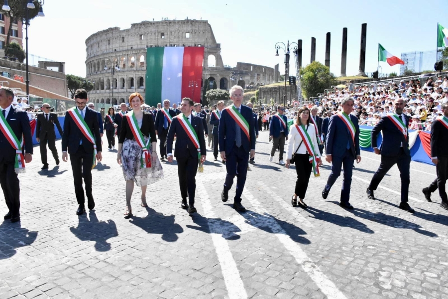 Festa della Repubblica, il Presidente del Consiglio Nazionale Anci Marco Fioravanti apre il corteo ai Fori Imperiali