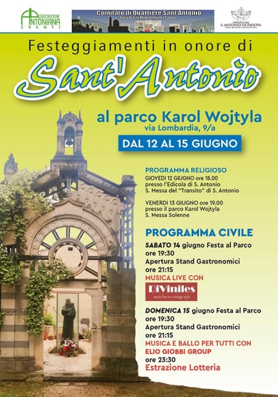 - 15 giugno Festa di Sant’Antonio al Parco Karol Wojtyla: