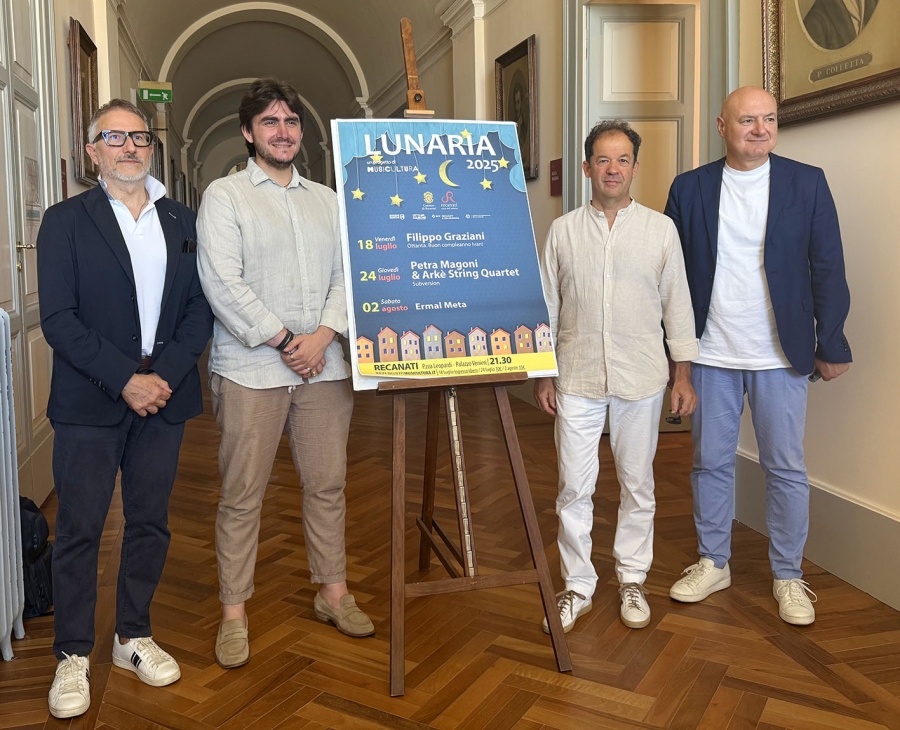 18 luglio FILIPPO GRAZIANI Ottanta. Buon compleanno Ivan! Piazza Giacomo Leopardi 24 luglio PETRA MAGONI con ARKÈ STRING QUARTET Subversion Cortile di Palazzo Venieri 2 agosto ERMAL META Piazza Giacomo Leopardi Tornano le notti di “Lunaria”, la popolare, amata rassegna sostenuta dal Comune di Recanati, ideata e artisticamente curata da Musicultura. Il cartellone della stagione 2025 prevede tre appuntamenti: tre artisti d’eccezione, tre serate ricche di magia nel cuore del centro storico recanatese. “Con Lunaria Recanati si conferma al centro della musica italiana, e quest’anno ancora di più, visto che le serate sono passate da due a tre. – Ha dichiarato il sindaco Emanuele Pepa - Si tratta anche di un richiamo turistico importante che valorizza Recanati sotto molteplici punti di vista. La combinazione Recanati e musica, attraverso Lunaria, del resto, è un punto saldo della nostra estate già ricca di eventi e Lunaria ne è sicuramente una punta di diamante, considerando anche il coinvolgimento di Piazza Leopardi e di Palazzo Venieri per gli eventi. Quest’anno abbiamo deciso di predisporre un prezzo simbolico per due spettacoli su tre (Filippo Graziani è gratuito) che può esserci utile anche per garantire maggiore sicurezza ed un pubblico più interessato ai concerti. Appuntamenti pensati per fasce generazionali diverse tra loro, proprio per attirare un pubblico vario ed eterogeneo. Recanati, pertanto, con questa kermesse, continua ad attirare l’interesse del panorama musicale nazionale, dando un respiro molto ampio alla sua concezione di eventi culturali capaci di esprimere tutte le potenzialità del nostro territorio. E della nostra città ovviamente.” La musica, la voce, la parola si apprestano ora a sintonizzarsi con il fascino degli scenari architettonici di una cittadina a forte vocazione culturale come è Recanati. “Ospiteremo nei luoghi più suggestivi e simbolici della nostra città tre ospiti di grande rilievo nazionale – ha affermato l’assessore alla Cultura Ettore Pelati - dalla serata di apertura del 18 luglio ad ingresso libero con Filippo Graziani, che si esibirà sul palco di Piazza Leopardi, alla talentuosa Petra Magoni, che troverà nel cortile di Palazzo Venieri una cornice più raccolta e pittoresca per esaltare le sue grandi doti artistiche. Infine, ultimo ma non ultimo, Ermal Meta lascerà di certo emozioni intense con la sua esibizione del 2 agosto ancora in Piazza Leopardi per la sua unica data nelle Marche. Un ulteriore elemento che ci inorgoglisce e ci fa dire di aver presentato a Recanati un’offerta estiva di grande valore artistico. Grazie a Musicultura per la disponibilità e la collaborazione dimostrate nell’organizzazione di questa edizione”. È un piacevole rito che si rinnova da più di venticinque anni quello delle notti di spettacolo sotto le stelle di Lunaria a Recanati. Ed è un pubblico da sempre attento e appassionato quello che partecipa a questo appuntamento centrale dell’estate marchigiana, con spettatori residenti nel territorio che si mescolano a flussi che convergono a Recanati da altre città e da fuori regione. “Con i concerti di Filippo Graziani, Petra Magoni con String Quartet ed Ermal Meta, Lunaria offre ai suoi spettatori tre esclusive marchigiane, tre universi espressivi che spaziano in territori assai diversi tra loro, ma soprattutto garantisce l’inventiva e il temperamento di tra artisti autentici, che nel live non usano artifici e si danno al pubblico con generosità” ha detto il direttore artistico Ezio Nannipieri. Da anni al fianco di Lunaria la Banca di Credito Cooperativo di Recanati e Colmurano “La nostra Banca sostiene Lunaria da tantissimi anni in quanto rappresenta un momento di aggregazione importate per Recanati e per il territorio – ha affermato Gerardo Pizzirusso Presidente della Banca di Credito Cooperativo di Recanati e Colmurano - un appuntamento di prestigio che ogni estate attrae tanti visitatori e turisti. Ringrazio Musicultura e il Comune di Recanati per l’impegno e faccio i miei complimenti per la scelta artistica della nuova stagione 2025” Si parte venerdì 18 luglioin Piazza Leopardi con il trascinante concerto di Filippo Graziani,dedicato al padre “Ottanta. Buon compleanno Ivan!” Un racconto musicale potente, intimo e travolgente, attraverso i brani più amati di Ivan Graziani ma anche quelli meno noti, scelti con cura da Filippo per offrire uno sguardo personale e autentico sull’universo creativo del padre Ivan. Con lui sul palco un rodato ensemble di musicisti: il fratello Tommy Graziani alla batteria, Francesco Cardelli al basso, Massimo Marches alle chitarre, Stefano Zambardino tastiere, Riccardo Cardelli polistrumentista.“Ottanta. Buon compleanno Ivan“, con la sua atmosfera di festa, sarà un’occasione per immergersi nelle storie senza tempo di Ivan Graziani e riscoprire il suo impatto culturale attraverso lo sguardo creativo di Filippo. Con oltre 10 anni dedicati a diffondere l’eredità musicale del padre, Filippo ha dimostrato di essere un performer carismatico e creativo, non limitandosi a interpretare i brani di Ivan, ma rinnovandoli con il suo stile, creando nuovi arrangiamenti che non intaccano l’essenza originaria ma la impreziosiscono, tracciando un ponte tra generazioni. Una serata all’insegna della memoria, dell’energia e dell’autenticità, con in primo piano la peculiarità vocale di Filippo e la collaudata pienezza del sound della sua band. L’ingesso è libero. Mercoledì 24 luglio Lunaria si sposta nell’atmosfera più raccolta del Cortile di Palazzo Venieri, per accogliere la personalità prorompente e la voce magnetica di Petra Magoni, sostenuta nell’occasione dall’ Arkè String Quartet, l’ensemble che si può dire abbia conferito una nuova identità sonora al format del quartetto d’archi, composto da Carlo Cantini al violino elettrico, Valentino Corvino al violino/oud/live electronics, Matteo Del Soldà alla 