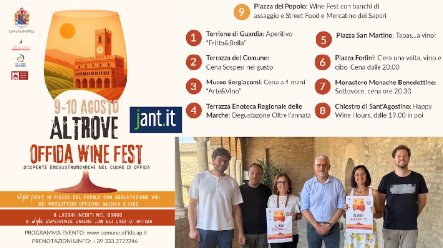 Si terrà sabato 9 e domenica 10 agosto nel cuore di Offida la prima edizione di “Altrove – Offida Wine Fest”, un evento diffuso che celebra il vino, la cucina e le storie del territorio attraverso un format innovativo e coinvolgente. “Altrove – spiega l’assessora al Turismo Isabella Bosano – si propone come una nuova piattaforma di promozione territoriale, capace di coniugare eccellenza produttiva, cultura e turismo esperienziale” Promosso dall’Amministrazione Massa, il progetto nasce dalla volontà di creare un percorso condiviso tra il Comune, i produttori e i ristoratori con l’obiettivo di raccontare il vino offidano da nuove prospettive. Il nuovo format, coordinato da Laura Di Pietrantonio, coinvolge ben undici cantine locali e si svolgerà tra la centralissima Piazza del Popolo, con banchi di degustazione, street food e musica dal vivo, e otto location segrete dislocate nel borgo, accessibili solo in occasione dell’evento. Terrazze nascoste, chiostri silenziosi, piazzette intime e giardini storici faranno da sfondo a cene, aperitivi e degustazioni inedite ideate in collaborazione con i ristoratori di Offida. “Altrove è il punto di partenza di un nuovo cammino. Racconteremo il vino in maniera più moderna e umana, dando voce ai produttori e creando esperienze che vadano oltre l’assaggio”, dichiara la coordinatrice Laura Di Pietrantonio. “Abbiamo voluto costruire qualcosa di diverso - aggiunge Simone Perozzi, consigliere con delega a Turismo e Agricoltura - che mettesse al centro il territorio, i piccoli produttori e il futuro del vino offidano. Questo evento rappresenta l’inizio di un percorso comune.” Il Wine Fest in Piazza, a partire dalle ore 19, sarà a ingresso libero. In programma: degustazioni con i produttori, mercato dei sapori artigiani e street food (Bunker Pub e GastroCiccia). Le cantine partecipanti sono: Ciù Ciù, Clandestini, D’Erasmo, Il Chierico, Mencerù, M’rella, San Filippo, San Giovanni, Tavio, Tenuta La Riserva e Valle del Sole. Sarà possibile ritirare il calice e acquistare i coupon per gli assaggi. In parallelo si svolgeranno le Wine Experiences, otto esperienze esclusive, in otto location sorprendenti in cui ci saranno aperitivi, cene, degustazioni e dopocena. Gli chef offidani interpreteranno i vini del territorio in luoghi inediti e accessibili solo per questa occasione. Tra i format proposti: “Fritto & Bolla” al Torrione di Guardia “Sospesi nel gusto” sulla terrazza del Comune Cena a 4 mani Arte & Vino al Museo Sergiacomi Oltre l’annata all’Enoteca Regionale Cena… sottovoce nel giardino del Monastero Come una volta: vino & cucina, Piazza Forlini Tapas bar… a vino, Piazza San Martino Happy hours, Chiostro Sant’Agostino. Alcune esperienze prevedono un numero limitato di posti con prenotazione obbligatoria. Per informazioni www.comune.offida.ap.it, oppure 333 2722246. “Altrove è l’occasione per fare storytelling - aggiunge Alessandro Schettino, rappresentante dell’Enoteca Regionale - per raccontare il lato più autentico dell’agricoltura”. “Un’atmosfera di festa coinvolgerà l’intero centro storico – continua Bosano – grazie all’intrattenimento di Miniera delle Arti e alla presenza del mercatino in Piazza . L’iniziativa è realizzata grazie all’imprescindibile supporto della Pro Loco di Offida e del presidente Tonino Pierantozzi”. “Altrove – conclude il Sindaco Luigi Massa – è un progetto nato per unire energie, visioni e competenze in un'immagine coordinata del nostro territorio. Costruire iniziative basate sulla collaborazione non è semplice, ma è proprio da qui che si parte per rafforzare il settore vinicolo. Altrove è anche un'esperienza suggestiva, quasi onirica, che racconta Offida come borgo autentico e vitale che mette a disposizione il meglio di sé per accogliere, sorprendere e raccontare nuove storie Sempre con impegno e continuità.”