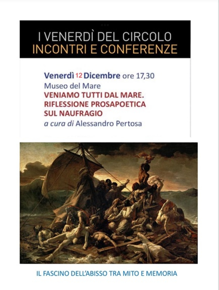 Protagonista sarà il filosofo e scrittore ALESSANDRO PERTOSA che presenterà al pubblico una conversazione filosofica dal titolo “VENIAMO TUTTI DAL MARE.RIFLESSIONE PROSAPOETICA SUL NAUFRAGIO” Pertosa ci guiderà in un percorso tra storia e mito intorno al tema del naufragio in tutte le sue accezioni a cominciare dalle radici antiche del concetto, sia nella sua origine legata al rapporto contraddittorio che l’uomo Greco ha avuto con il mare , sia nella sua evoluzione che ha visto nel tema significati metaforici che hanno attraversato la storia umana. San Benedetto città di mare ha la sua vicenda marinara costantemente condizionata da terribili disastri tra le acque che meritano, per come hanno inciso nel tessuto sociale, una meditazione che vada oltre il semplice ricordo. Una elaborazione filosofica e “ PROSAPOETICA” come la definisce Pertosa costituisce la base per comprenderne tutte le letture che sono state fatte del naufragio fino all’ossimoro famosissimo di Ungaretti che intitolò una sua famosa raccolta poetica del 1919 “ ALLEGRIA DI NAUFRAGI”. Un’occasione che il Circolo dei Sambenedettesi offre alla città per approfondire il nostro rapporto con il mare da cui biologicamente tutti veniamo e che tra vita e morte segna la stessa esistenza del genere umano. I soci e la cittadinanza sono invitati ad intervenire numerosi.