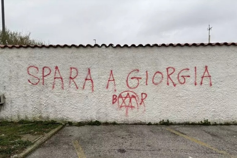 La scritta, vergata con vernice spray di colore rosso, con riferimento evidente alla presidente del Consiglio Giorgia Meloni, è apparsa oggi sul muro di un parcheggio di un locale vicino al mare a Porto Recanati zona Scossicci. Sull'episodio sta svolgendo accertamenti la Digos della Questura di Macerata per risalire all'autore.