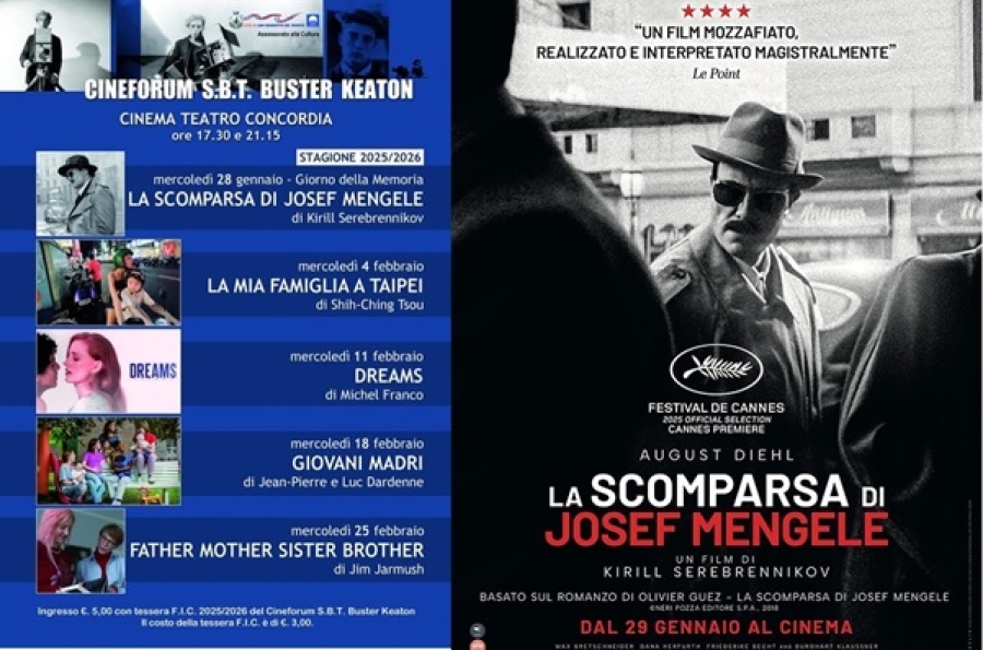 Cinema Teatro Concordia, stagione 2025/2026 - II° ciclo: mercoledì 28 Gennaio proiezione del film LA SCOMPARSA DI JOSEF MENGELE di K.Serebrennikov