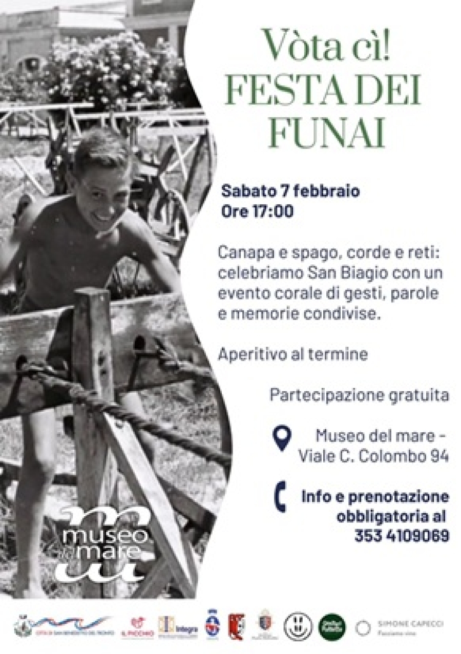 Sabato 7 febbraio alle ore 17:00, il Museo della Civiltà Marinara delle Marche ospiterà "Vòta cì! Festa dei Funai", un evento speciale dedicato alla celebrazione di San Biagio, protettore dei funai, che unirà proiezioni, testimonianze, poesia dialettale e dimostrazioni dal vivo dell'antica arte marinara.