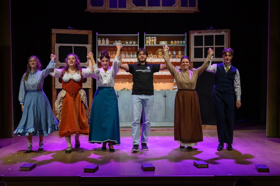 La compagnia pugliese metterà in scena “Che pasticcio Mrs Peach”, scritto e diretto da Alessandeo Iacovelli. La commedia musicale in due atti è ambientata nei primi anni del Novecento in un piccolo villaggio di una contea nel sud dell’Inghilterra, dove una bottega tiene alto il buon nome dell’arte pasticcera. Ma dietro torte deliziose e biscotti fragranti si nasconde una commedia fatta di intrighi e desideri. La morte inaspettata di Sir. Martin, fondatore della dolce bottega, lascia la pasticceria senza eredi e il timone passa nelle mani della rigida governante Mrs. Peach. Mentre domestici e dipendenti si destreggiano tra le richieste e gli umori della nuova direttrice, l’arrivo di una lettera inaspettata agita le acque e, mentre il profumo di cannella si diffonde nell'aria, i personaggi si intrecciano in un vortice di colpi di scena. Tra spolverate di zucchero a velo e aromi caramellati, l’amaro destino della pasticceria di Bibury è appeso a un filo... sarà il dolce potere dell'amore a deciderne le sorti? Sul palco gli attori cantanti: Eleonora Capobianco, Chiara Falagario,Teresiana Santamaria, Sara Mosca, Serena Tomasicchio, Giamarco Volza e con la partecipazione di Pietro Galetta ed Ernesto Marletta “Che pasticcio Mrs Peach” è l’ultimo spettacolo in concorso nella Rassegna Ascolinscena, i cui premi sono assegnati da una giuria e dal pubblico abbonato. Come consuetudine della Rassegna Ascolinscena – organizzata da DonAttori, Li Freciute e la Compagnia dei Folli – dopo lo spettacoli il pubblico è invitato alla degustazione di vino e struzzichini offerti dal supermercato Tigre di Villa Pigna. L’appuntamento è per sabato 7 febbraio alle ore 21:00 per uno spettacolo ricco di colpi di scena, insospettate complicità e un tocco di noir a condire la trama che stupirà con un finale inaspettato. Un lavoro corale, dal ritmo scorrevole, sorretto dalla buona presenza scenica della compagnia tutta e molto convincenti negli interventi vocali d’insieme, intercalati da duetti e assoli. Biglietti ancora disponibili presso il PalaFolli Teatro oppure on-line su www.palafolli.it (costo € 13,00) Info www.palafolli.it – 0736 35 22 11