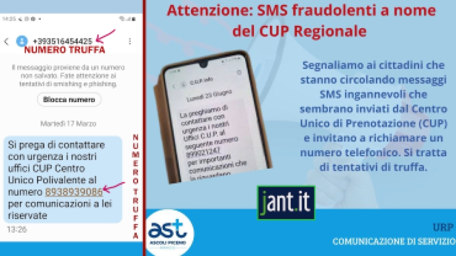 Quello di usare il Centro Unico di Prenotazione Sanitario è il modo più facile per far scattare la paura nell'utente che, intimorito, è subito spinto ad eseguire l'invito del breve messaggio arrivato. Questo è ciò che è accaduto ad un componente della nostra redazione che per fortuna non ha ceduto ed ha invece intrapreso una piccola ricerca contattando i vertici dell'AST di Ascoli Piceno, nostra azienda sanitaria di riferimento, che subito ha risposto confermando il dubbio. Il messaggio infatti risulta essere una frode, un tentativo di SMISHING o PISHING che viene attuato per rubare i propri dati sensibili. L'AST di Ascoli Piceno invita tutti i cittadini a fare molta attenzione e a non cadere nella trappola della finta urgenza