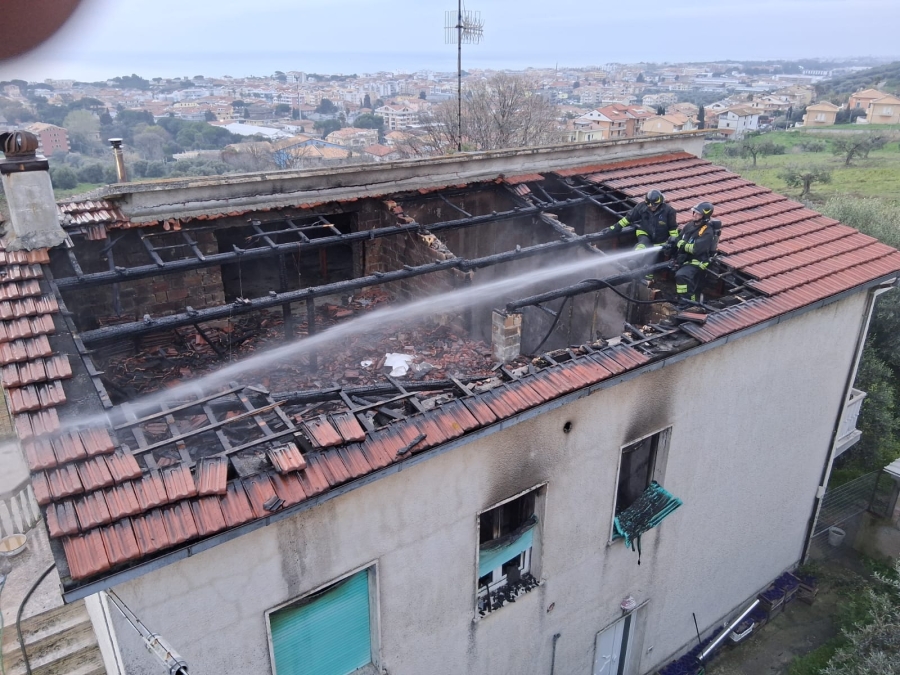 Su luogo dell'intervento sono sate inviate anche un'autobotte e un'autoscala del Comando di Teramo. Giunto sul posto, il personale dei vigili del fuoco ha provveduto a spegnere le fiamme che si sono sviluppate nel locale cucina al primo piano, per poi propagarsi, attraverso il vano scala, al sottotetto. Gli occupanti dell'abitazione incendiata, un uomo di 51 anni e una donna di 49enne, sono usciti incolumi dall'incendio che ha provocato il danneggiamento delle travi in legno del tetto che è parzialmente crollato. Durante l'intervento i vigili del fuoco hanno messo in salvo un cane e due gatti rimasti bloccati all'interno del l'abitazione. In una camera da letto è stato rinvenuto un cane di razza pastore tedesco che, nonostante i tentativi compiuti dai vigili del fuoco per rianimarlo, è deceduto a causa dei fumi respirati. In conseguenza dei danni subiti, l’abitazione è stata resa inutilizzabile. Sul posto sono intervenuti anche i Carabinieri di Alba Adriatica per gli adempimenti di competenza.