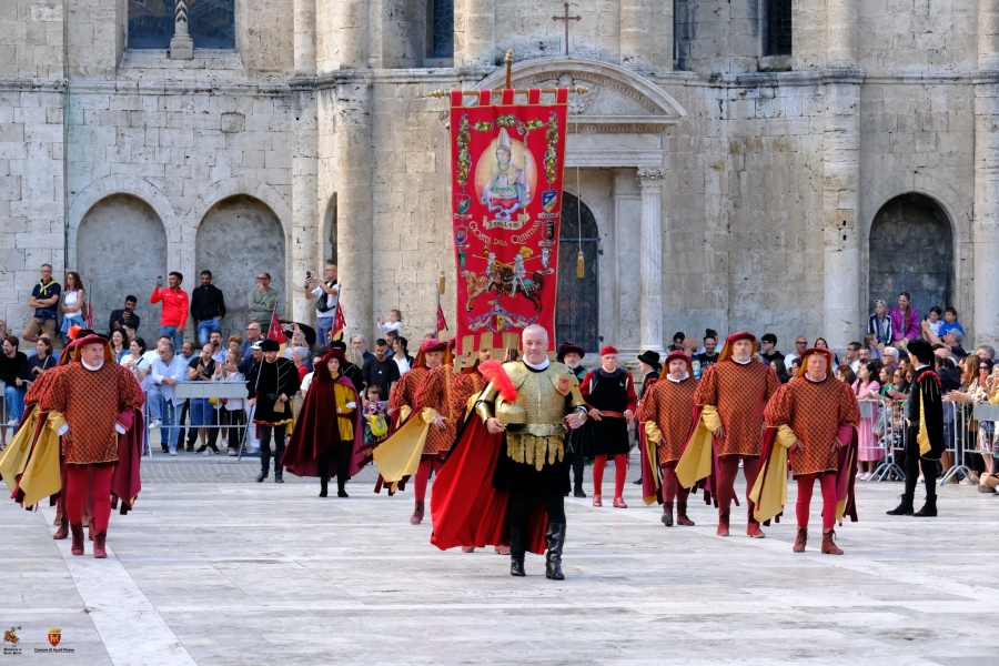 Un calendario ricco di eventi che accompagnerà cittadini e visitatori tra giugno e agosto, nel segno della tradizione, della rievocazione storica e del forte legame con i sestieri. Tre le principali novità di quest’anno. La prima riguarda il ritorno, dopo ben 23 anni, del Palio degli Sbandieratori e Musici nella suggestiva cornice di Piazza del Popolo. Una scelta resa necessaria dai lavori di rifacimento della pavimentazione di Piazza Arringo, che hanno comportato anche lo spostamento della cerimonia dell’Offerta dei Ceri, eccezionalmente prevista anch’essa in Piazza del Popolo. Terza novità, l’anticipo del Palio degli Arcieri, che si svolgerà il 20 giugno al Campo dei Giochi “Squarcia”. Il programma entrerà nel vivo proprio con il Palio degli Arcieri, giunto alla 32esima edizione, per poi proseguire il 4 luglio con una giornata intensa: dalla presentazione del Palio della Giostra di luglio presso la Pinacoteca Civica, alla tradizionale lettura del Bando, fino al ritorno degli sbandieratori protagonisti in Piazza del Popolo. Le esibizioni proseguiranno anche il giorno successivo con le gare a coppia, di squadra e dei musici. Il 10 luglio, in Piazza Sant’Agostino, si terranno il saluto alla Madonna della Pace e l’estrazione dell’ordine di Giostra, preludio alla sfida cavalleresca dell’11 luglio. In quella giornata il corteo storico sfilerà nel tardo pomeriggio, seguito in serata dalla Giostra in onore della Madonna della Pace al Campo Squarcia. Dopo una breve pausa, la Quintana tornerà il 26 luglio con la presentazione del Palio dedicato a Sant’Emidio e la lettura del Bando che darà ufficialmente il via alle festività patronali. Il primo agosto spazio all’Offerta dei Ceri, momento altamente simbolico e partecipato, mentre il 2 agosto si terrà il tradizionale corteo storico e, nel pomeriggio, la Giostra conclusiva in onore del patrono. Un cartellone articolato che conferma la Quintana come uno degli eventi storici più rilevanti del panorama nazionale, capace di unire spettacolo, devozione e identità cittadina, rinnovandosi nel rispetto della tradizione.