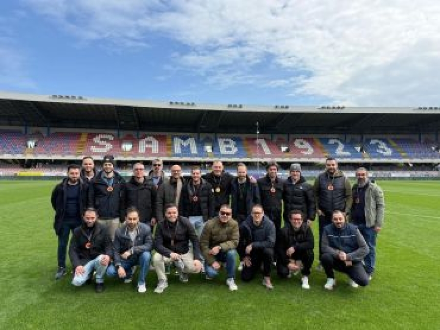 Non un semplice leit-motiv, ma un vero e proprio legame di sangue rossoblù. Nel giorno della Festa del Papà, i piccoli studenti dell’istituto comprensivo Miscia, accompagnati dai propri papà, hanno svolto un tour all’interno dello Stadio Riviera delle Palme. I piccoli ospiti hanno effettuato un percorso partendo dal cuore pulsante del Riviera, la Curva Nord, caratterizzata dai numerosi murales a tema e dalla celebre scritta “Tempio del Tifo”. Il percorso è proseguito visitando i vari settori dello stadio, il pullman brandizzato – gentilmente messo a disposizione da Canalibus – , lo spogliatoio locale, il tunnel di entrata in campo, il manto erboso del Riviera e la panchina riservata alla Samb. Ultima tappa la sala stampa, allestita, per l’occasione, con un’esposizione di maglie significative a cura di Pietro Cipolloni per raccontare la storia dei rossoblù dagli albori sino ai nostri giorni. Ad accogliere i bimbi, il Presidente Vittorio Massi, con il quale hanno dialogato e scambiato domande in sala stampa nelle vesti di piccoli giornalisti. Al termine del tour, la U.S. Sambenedettese ha consegnato a ciascun piccolo visitatore una calamita in ricordo di una giornata che a loro e ai loro papà rimarrà per sempre nel cuore, a suggello di una memoria che va tramandata di generazione in generazione.