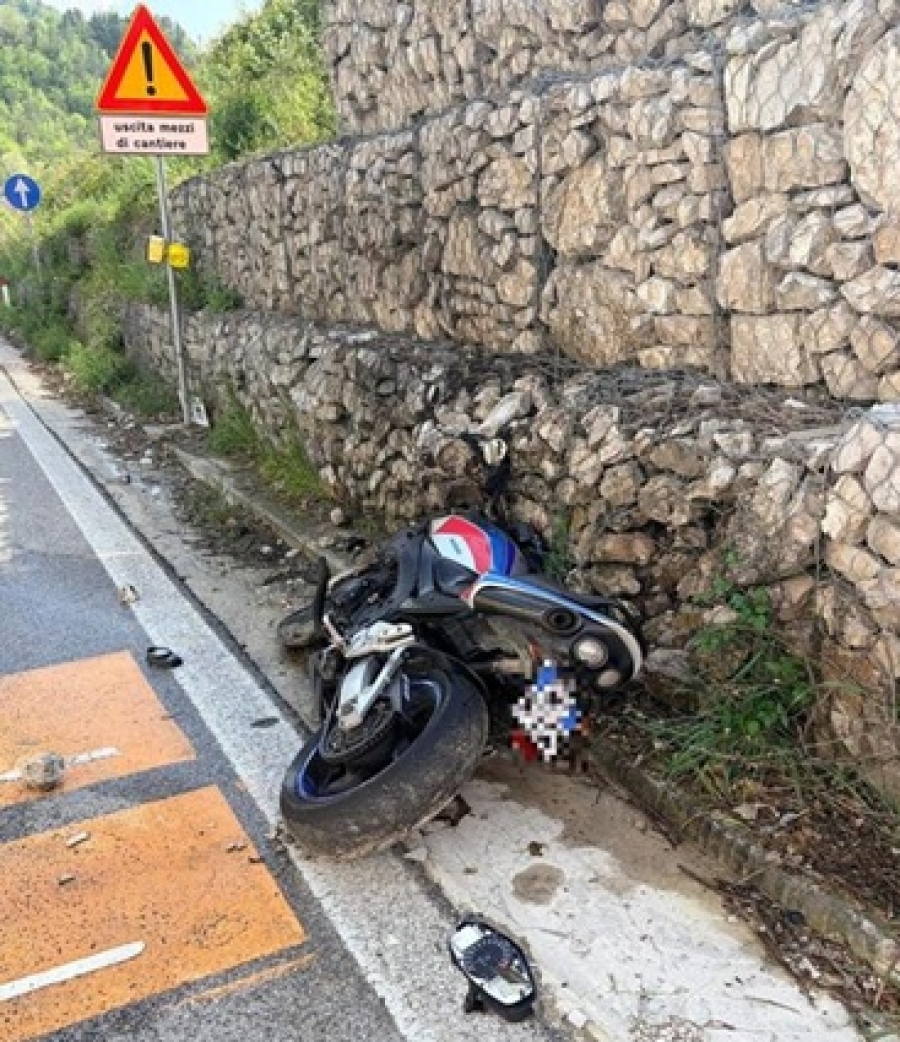 L'uomo, per cause ancora da chiarire ha perso il controllo del mezzo, la moto si è schiantata contro un muro laterale e, dopo l'impatto, ha preso fuoco, rendendo necessario l'intervento dei vigili del fuoco per domare le fiamme. Sul posto sono intervenuti i sanitari della Croce Verde di Acquasanta che, riscontrando un importante trauma facciale, hanno chiesto l'intervento dell'eliambulanza Icaro 02. Dopo essere stato stabilizzato, il ferito è stato trasportato in circa 20 minuti al Trauma Center di Torrette per accertamenti approfonditi, necessari a escludere eventuali lesioni interne. La Polizia locale ha gestito la viabilità deviando temporaneamente il traffico sulla Salaria vecchia.
